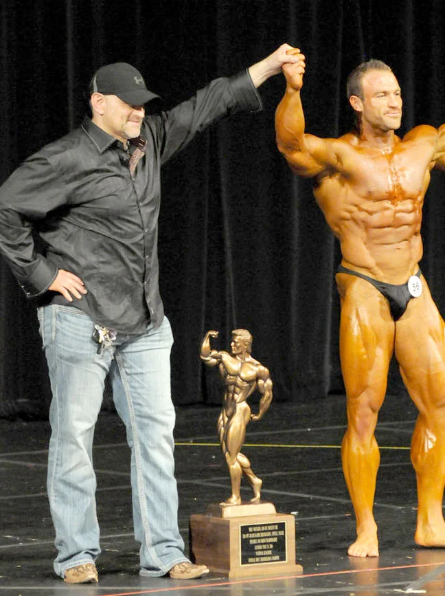 Mike presenting an overall bodybuilding award to a show champion.